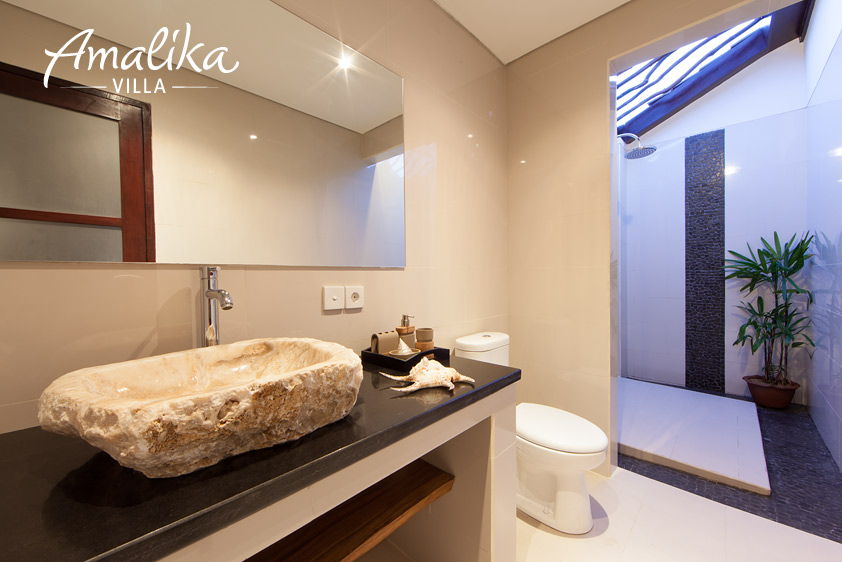 - 2 Semi-open ensuites with shower, toilet & natural stone washbasin
